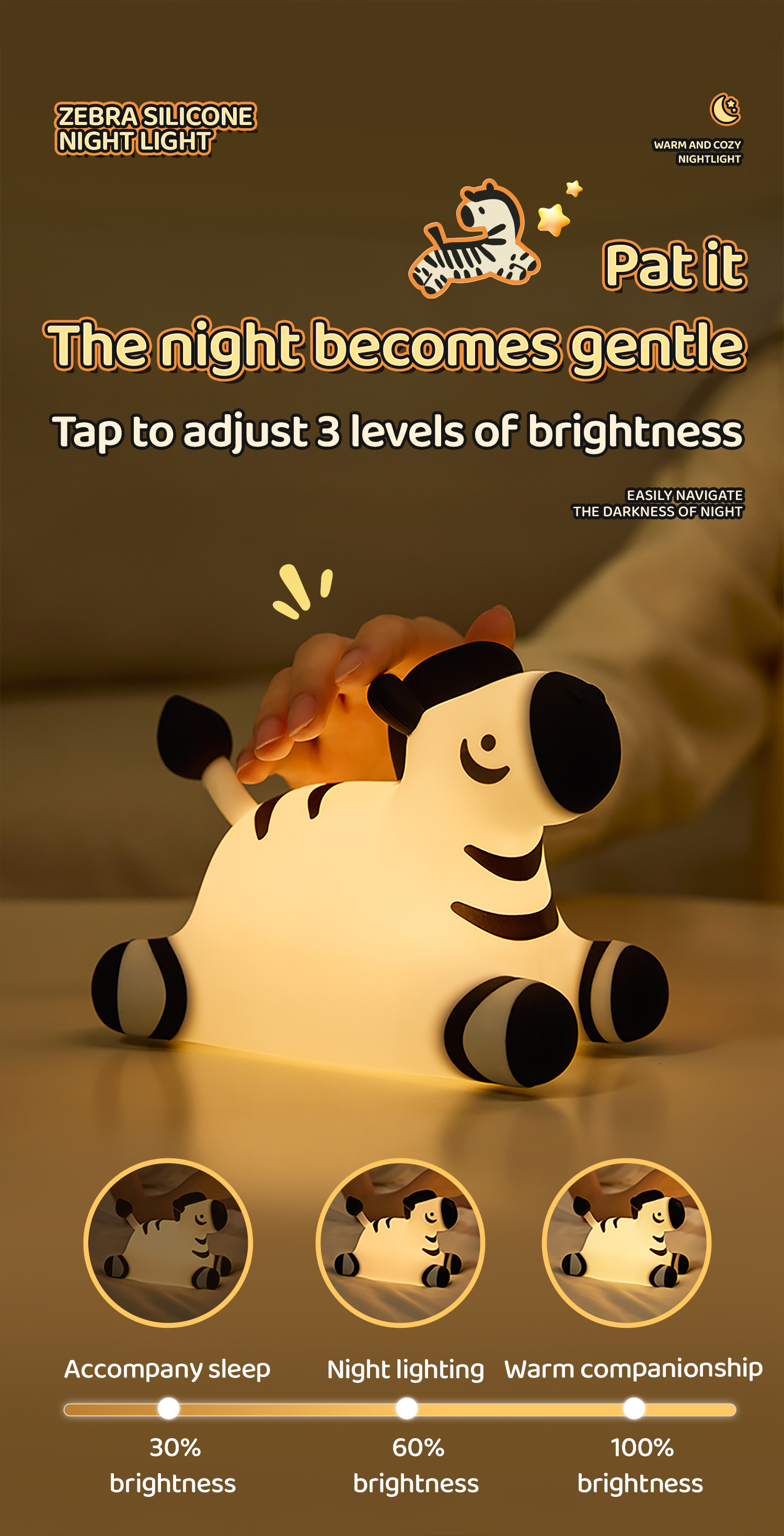 3. Three levels of brightness adjustable
